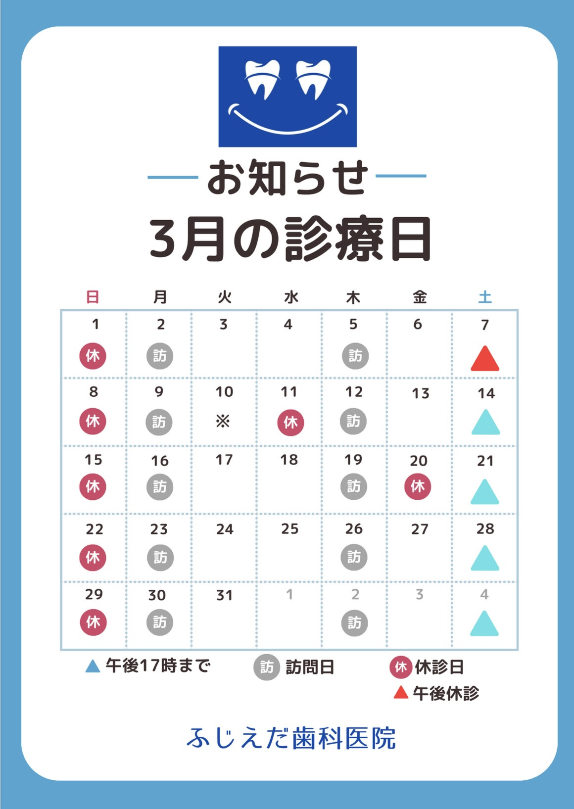 3月の診療日予定です。
